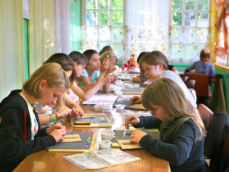 Затем слепленные фигурки высыхают, обжигаются и вновь возвращаются в руки детей — чтобы разноцветные краски покрыли изделия. Ребята в лагере от мала до велика очень любят этот кружок — ведь где еще можно получить удовольствие: просто и со вкусом.